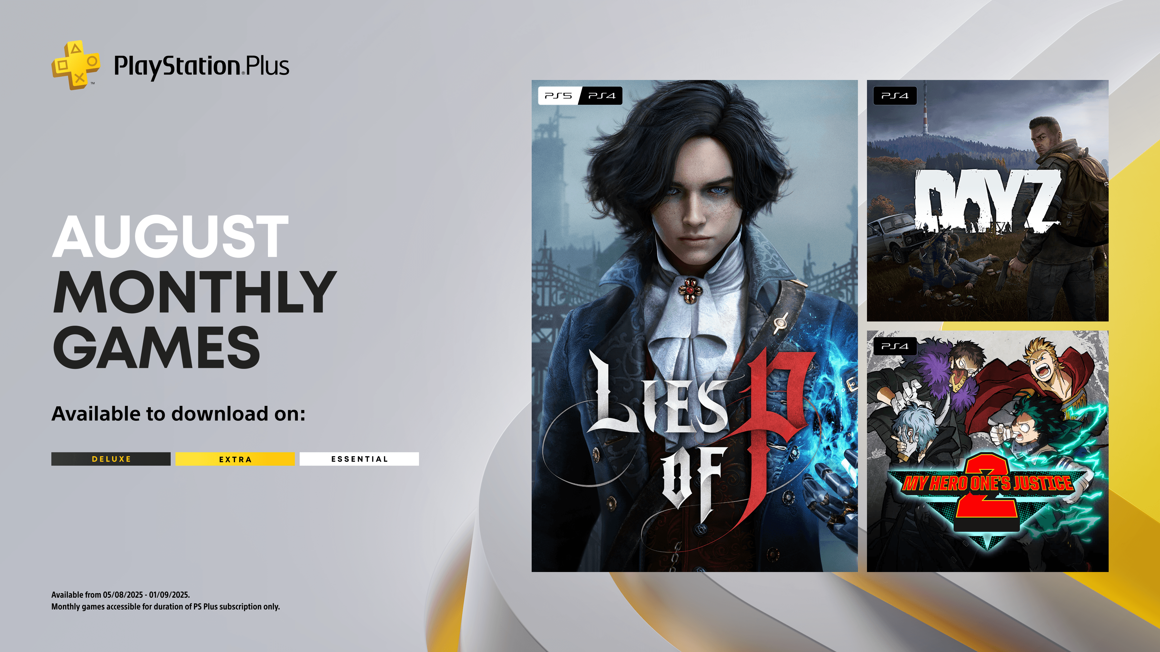 PlayStation Plus members have until September 1 to add Lies of P, Day Z and My Hero One’s Justice 2 to their game library.