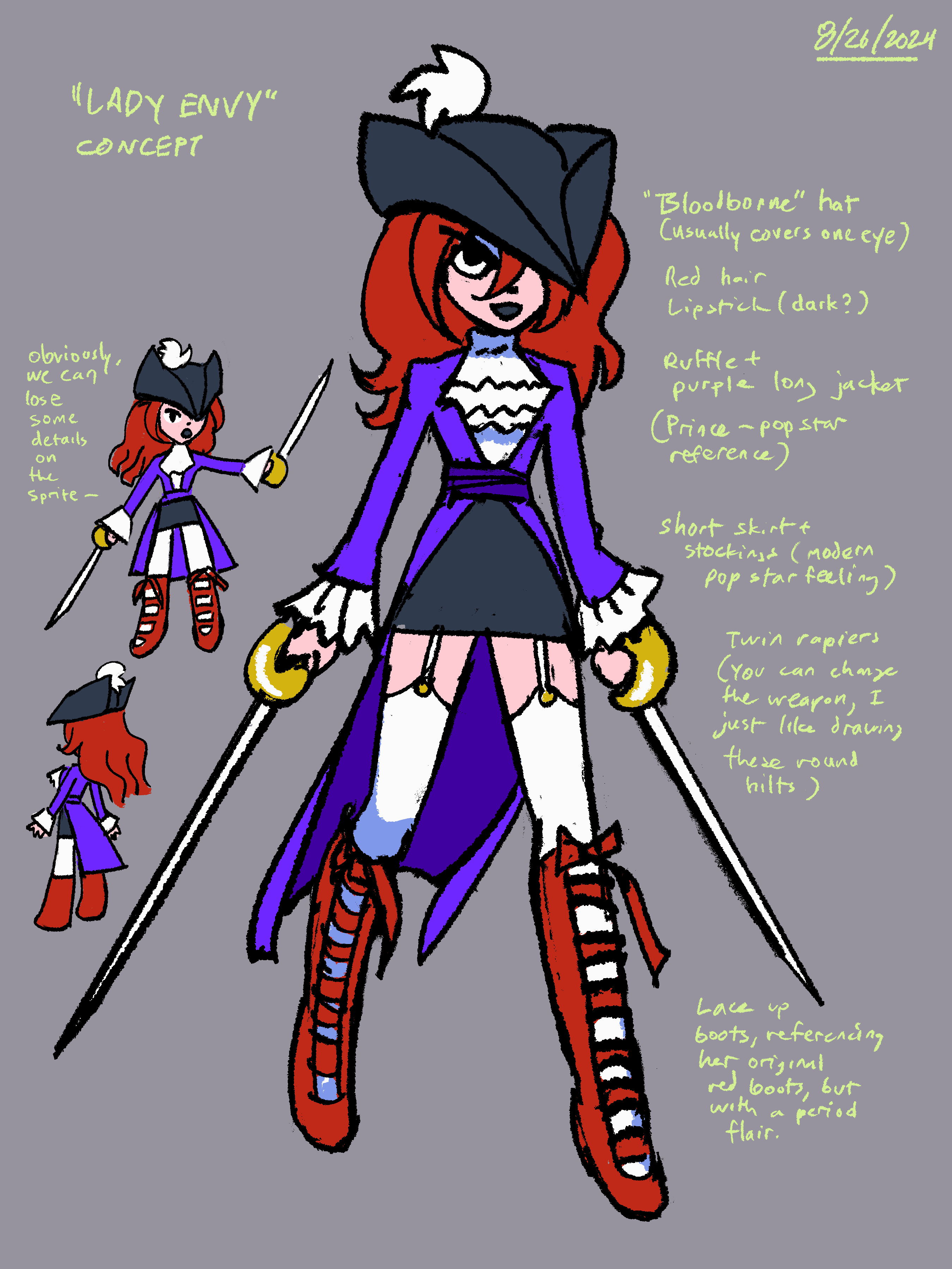 “A project like this is a big collaboration between so many artists and storytellers. Lady Envy was one of the first bosses we discussed. She’s a mashup of so many fun references and homages to classic games we loved from the 80s-90s (“Casa Vania”). She might bring to mind a few more modern references, too.