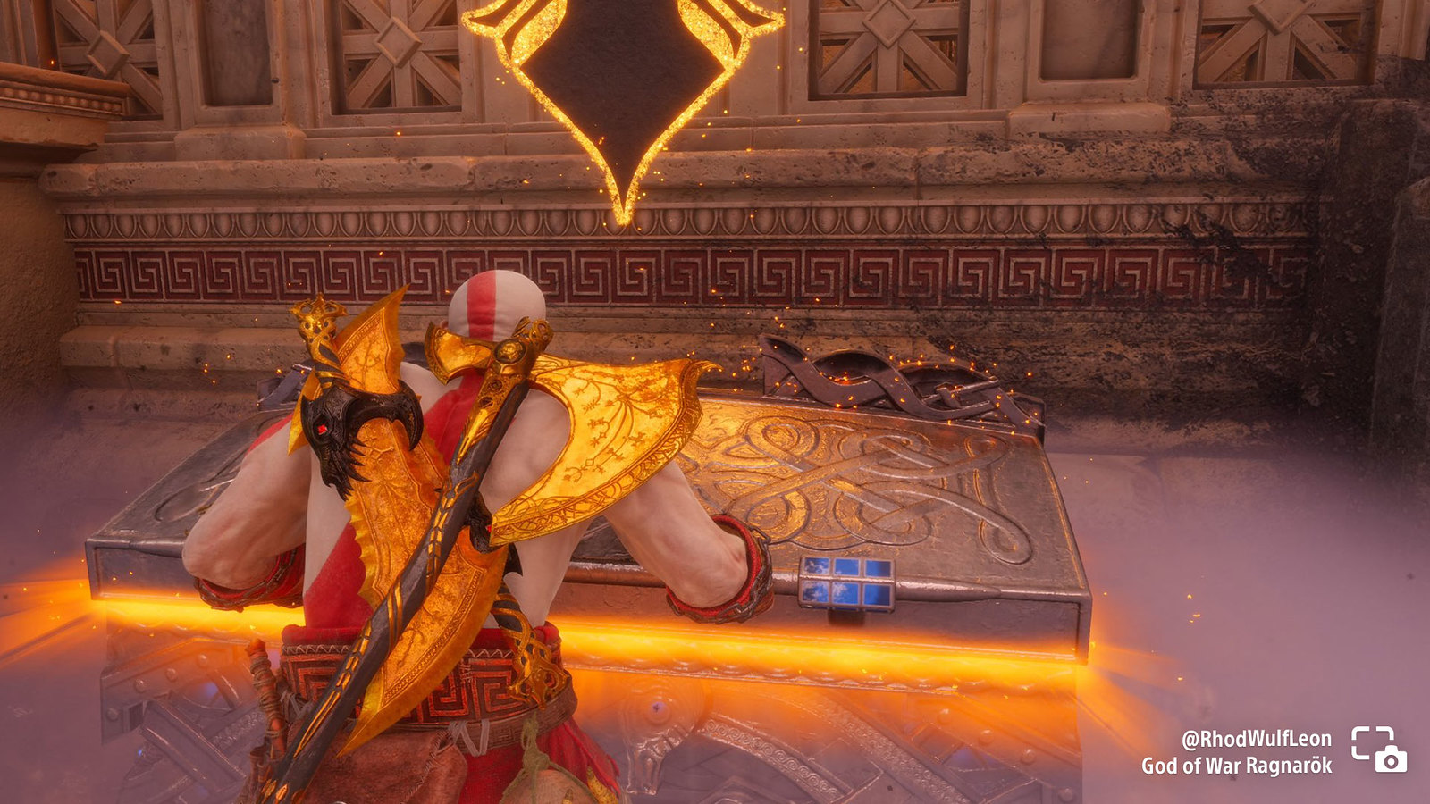 RhodWulfLeon shares Kratos opening a chest in God of War Ragnarök.