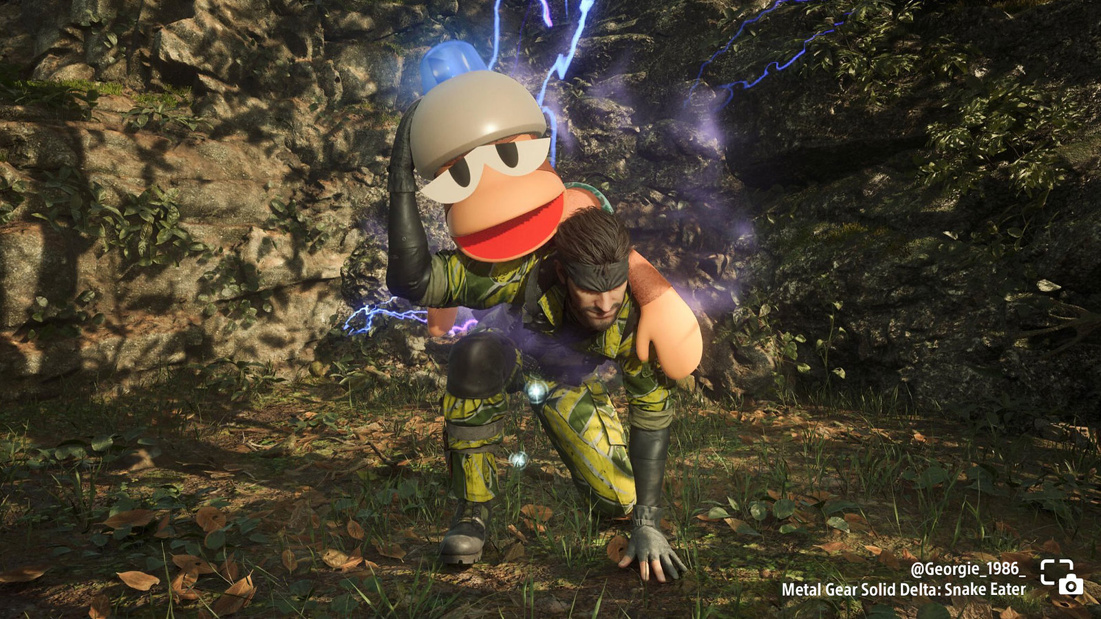 Georgie_1986_ shares Snake recovering a silly monkey in Metal Gear Solid Delta: Snake Eater.