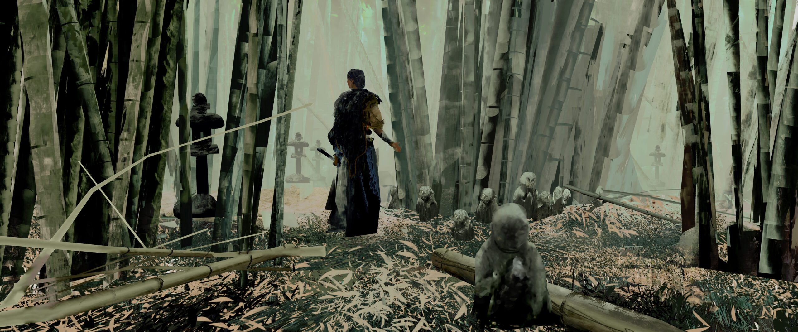 “There’s also the use of negative space, like when you start the quest and go up a staircase with the mist coming down and the spider lilies going up, with old corpses present… but nothing is attacking you. That long walk is simply there to immerse you in the tone.”