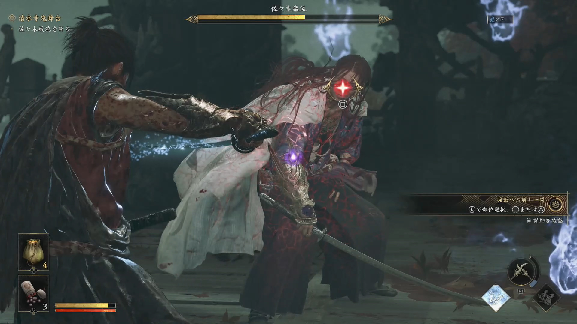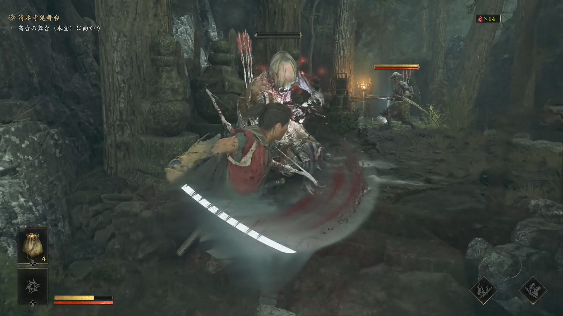 The boss fight against Sasaki Ganryu, set on the iconic wooden stage of Kiyomizu-dera Temple, was a deadly duel. Ganryu unleashed brutal, unpredictable attacks, such as axe kicks and spinning slashes. To survive, I had to parry his relentless onslaught while striking back to chip away at his Stamina Gauge. The battle forced me to leverage every skill I had mastered up to that point.